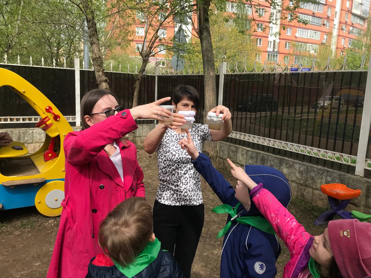Активное участие в экологическом субботнике "Зеленая Россия" с воспитанниками и их родителями. Посвящение воспитанников в зеленые пионеры.