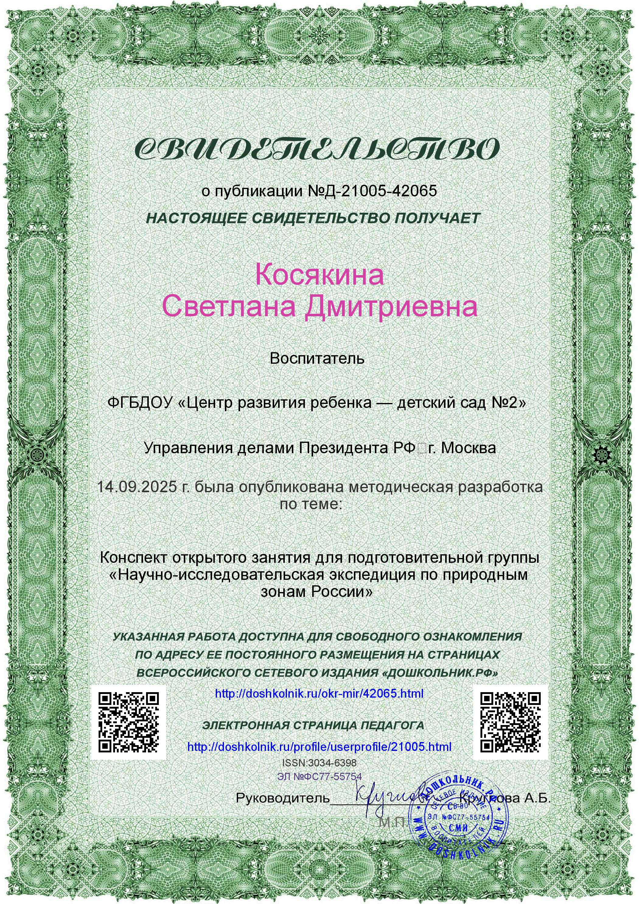 Конспект занятия для подготовительной группы "Научно-исследовательская экспедиция по природным зонам России" [Электронный ресурс] // 2025. URL:
